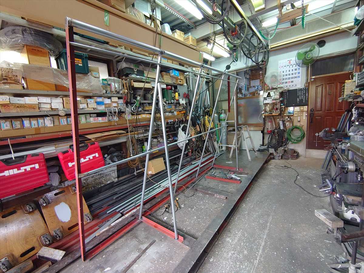 ●サイトウテントでは一部の加工を除き、大部分は自社にて鉄骨製作、生地縫製加工を行っています。 ●製作設備 半自動アーク溶接、被覆アーク溶接、TIG溶接、酸素アセチレンガス溶接切断、300mmメタルソー切断機、タッピングボール盤、工業用ミシン 決して広い工場ではありませんが工夫しながら製作しています。